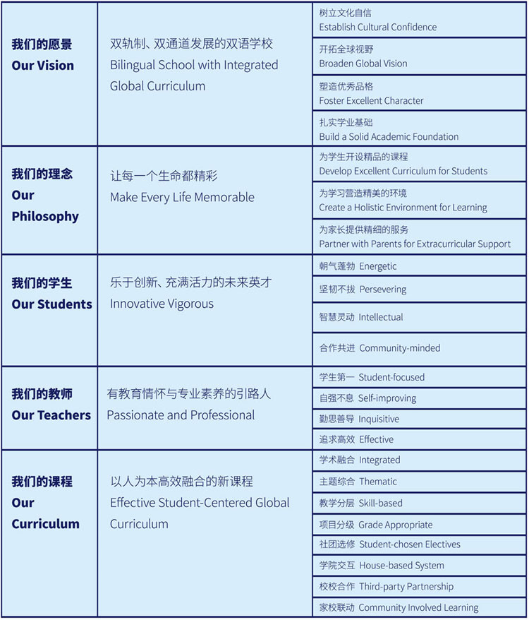 The Ivy LOGO school badge is designed with the new educational philosophy of “embrace students first, and then teach students to explore” as the spiritual connotation design motivation. The school integrates Chinese culture, Western culture and IB philosophy into one, expressing dedication to assisting and cultivating seedlings to become a whole person Educational ideals and goals and cultivate the basic ability of students to embrace the world. The Ivy is based on Chinese culture and features American courses. It is embodied in the collocation of red, blue and white colors in the creative LOGO design. The shape of the LOGO adopts the traditional "shield" image of American colleges and universities. The eight five-pointed stars on the left symbolize the integration. The Chinese and Western cultural elements also represent the concept of the eight prestigious American Ivy schools. The eight ivy leaves on the right indicate that the school will remain evergreen, and it also symbolizes Ivy students climbing the top academic universities in the United States.