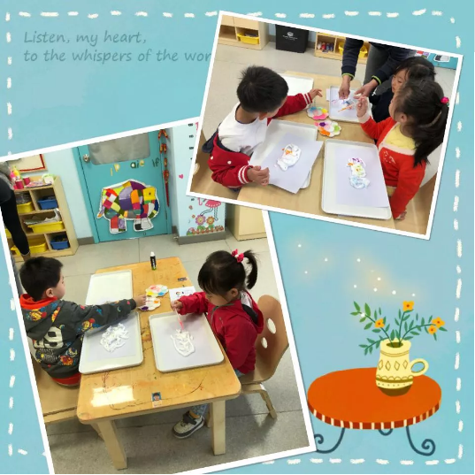 艺术主题派对的游戏真不少,艺术形式多种多样,涂鸦、扎染、泡泡画、人偶图,每个小朋友都玩得很开心。